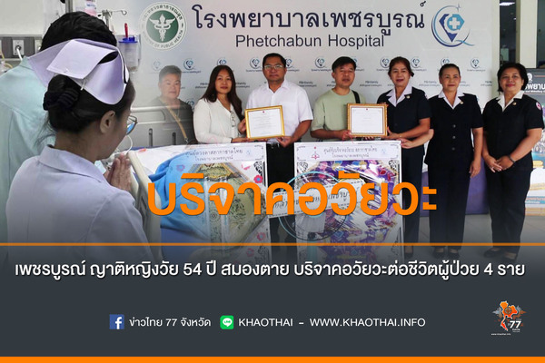 เพชรบูรณ์ ญาติบริจาคอวัยวะหญิงวัย 54 ปี ลื่นล้มศีรษะฟาดหลังมีภาวะสมองตาย ช่วยต่อชีวิตผู้ป่วยได้อีก 4 ราย
