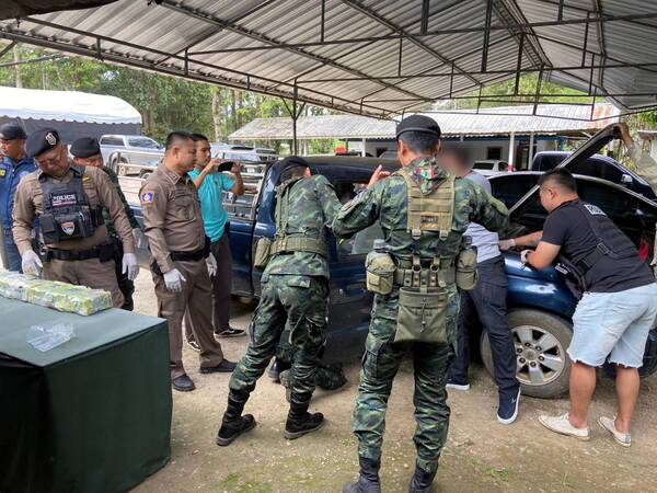 กระทั่งเวลา 13.30 น. เจ้าหน้าที่พบรถต้องสงสัยขับมาจากด่านชายแดนบ้านพระเจดีย์สามองค์มุ่งหน้าเข้า อ.สังขละบุรี จึงเรียกตรวจค้น แม้ภายในห้องโดยสารจะไม่พบสิ่งผิดกฎหมาย แต่เจ้าหน้าที่พบเสียงผิดปกติบริเวณตัวรถ เมื่อทำการงัดแผงประตูจึงพบ ถุงยาไอซ์ซุกซ่อนจำนวนมาก จึงควบคุมตัวคนขับและนำรถเข้าตรวจละเอียดที่ สภ.สังขละบุรี