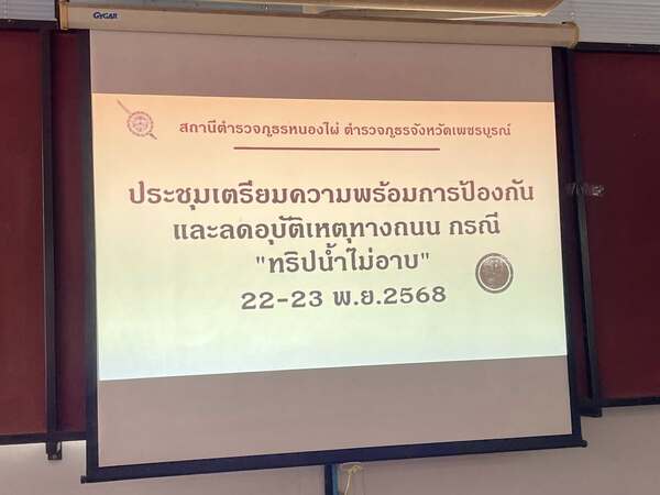 วันที่ 18 พฤศจิกายน 2568 เวลา 13.00 น. ที่ห้องประชุม ศปก.ชั้น 2 สภ.หนองไผ่ จ.เพชรบูรณ์ มีการประชุมเพื่อขับเคลื่อนมาตรการป้องกันและลดอุบัติเหตุทางถนน กรณีกลุ่มผู้ใช้รถจักรยานยนต์จัดกิจกรรม “น้ำไม่อาบ” ในพื้นที่ อ.เขาค้อ และ อ.หล่มเก่า จังหวัดเพชรบูรณ์ โดยมีผู้เข้าร่วมจากฝ่ายอำนวยการและปฏิบัติการของ สภ.หนองไผ่ และหน่วยงานภาคีเครือข่ายหลายฝ่าย