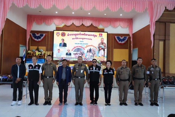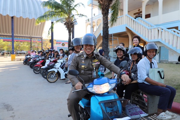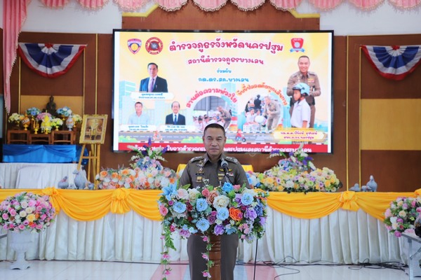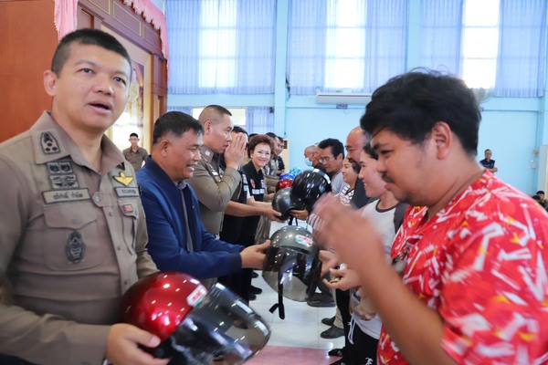 ตำรวจภูธรจังหวัดนครปฐมร่วมกับ สภ.บางเลน และ กต.ตร. จัดทำโครงการ พร้อมแจกหมวกนิรภัยมาตรฐาน จำนวน 325 ใบ ให้