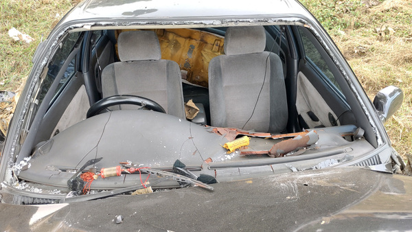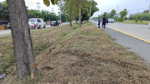 บริเวณใกล้กันพบเสาไฟฟ้าส่องสว่างริมร่องกลางถนนถูกชนจนโคมไฟหล่นแตก ห่างจากจุดที่รถหยุดประมาณ 50 เมตร โดยมีเศษชิ้นส่วนรถและกระจกแตกกระจัดกระจายทั่วพื้นที่
