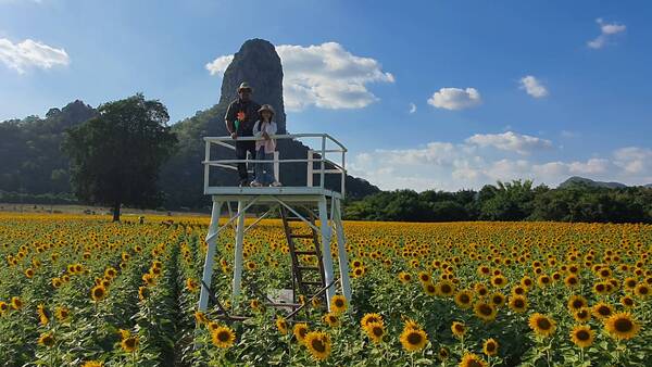 ทุ่งทานตะวันไร่จำรัส จ.ลพบุรี ผลิบานเต็มพื้นที่ เหลืองอร่ามกลางฉากหลังเขาจีนแล–เขาโด่ เปิดต้อนรับนักท่องเที่ยวช่วงวันหยุดยาวและปีใหม่ พร้อมมุมถ่ายรูปหลายจุดและหอคอยชมวิว 360 องศา