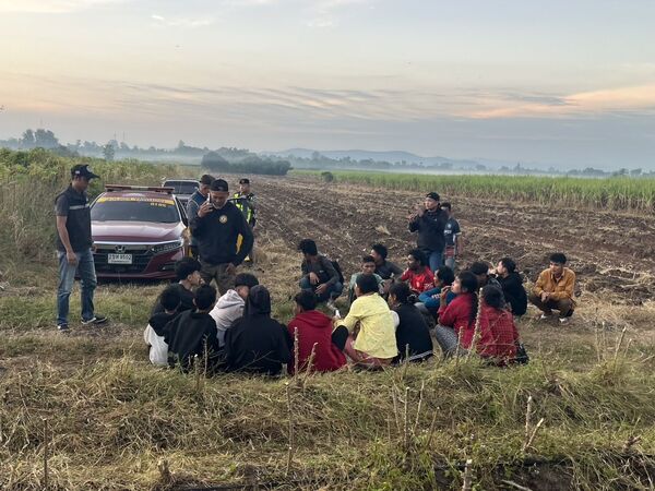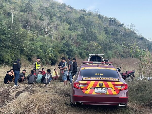 ตำรวจทางหลวงกาญจนบุรีไล่ล่ารถกระบะต้องสงสัยขนแรงงานต่างด้าวจากชายแดน เร่งเครื่องหนีกว่า 40 กิโลเมตร ก่อนเสียหลักพุ่งเข้าไร่อ้อย คนขับทิ้งรถหนี ส่วนแรงงานแตกฮือเข้าป่า ตำรวจต้องใช้ลำโพงประกาศเรียกออกมาคุมตัวได้รวม 19 คน