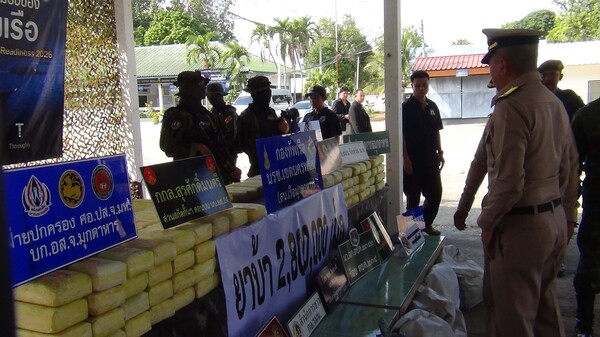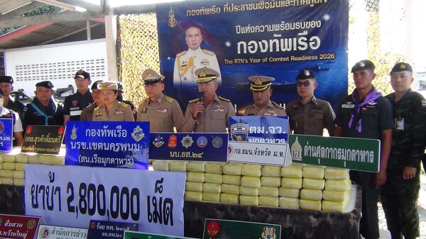 เมื่อวันที่ 30 ม.ค. 2569 เวลา 14.30 น. ที่สถานีเรือมุกดาหาร นายวรญาณ บุญณราช ผู้ว่าราชการจังหวัดมุกดาหาร พร้อม พล.ร.ต.ณรงค์ เอมดี ผบ.นรข. และหน่วยงานความมั่นคง แถลงผลการจับกุมยาบ้า จำนวน 2,800,000 เม็ด พร้อมเรือกีบเพลายาว 1 ลำ หลังลักลอบนำเข้าจากประเทศเพื่อนบ้านผ่านแม่น้ำโขง