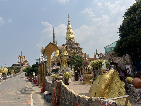 วัดพระธาตุผาซ่อนแก้วช่วงกลางวันแดดแรง อุณหภูมิแตะ 33°C นักท่องเที่ยวบางตา ขณะที่จุดชมวิวทะเลหมอกแม้ยังมีหมอกบางในช่วงเช้า แต่ถูกแทนที่ด้วยฝุ่น PM2.5 ทำให้ทัศนวิสัยลดลง ความสวยงามลดทอน นักท่องเที่ยวโดยเฉพาะกลุ่มครอบครัวและผู้สูงอายุ เลี่ยงการขึ้นจุดชมวิวในช่วงสาย-บ่าย สอดคล้องกับผลกระทบจากภาวะอากาศร้อนจัดและการสะสมฝุ่นจากปรากฏการณ์ผกผันอุณหภูมิ